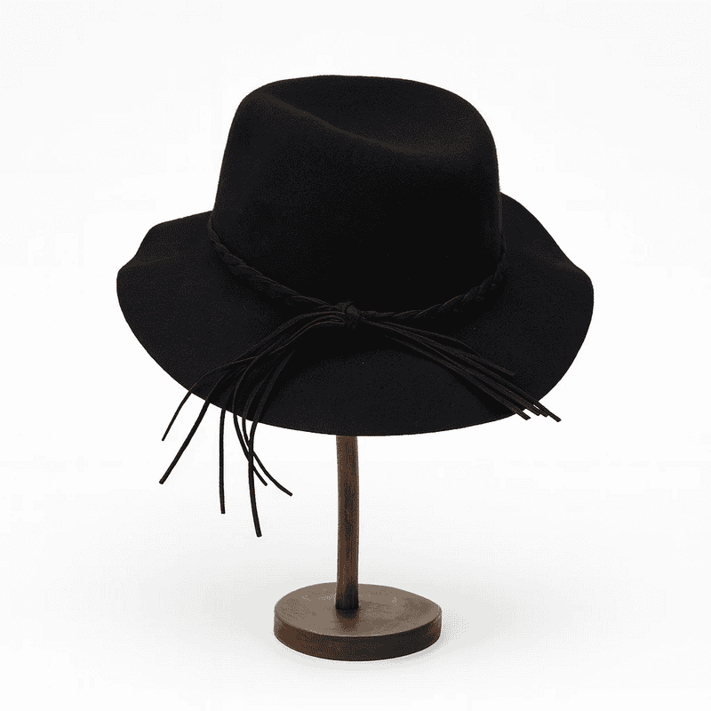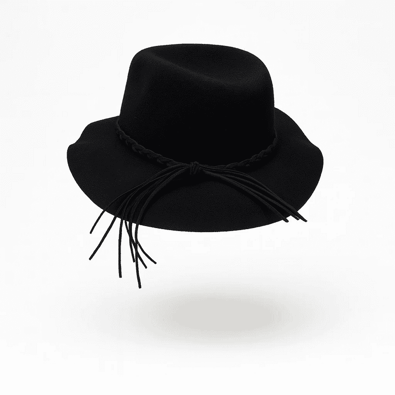 در پیچوخمِ تاریکیِ مطلق، آنجا که رازها خانه دارند، کلاهی مشکی چون شبنمِ مهتاب، از جنسِ احساس پدیدار میشود. لبههایش، حکایتگرِ وسعتی بیکران، دعوتیست به سفر در ناشناختهها. اما این بار، نوار بافتهاش، داستانی از هنر و ظرافت را زمزمه میکند؛ ریسههای آزادش، رقصندههایی کوچکاند بر شانههای باد، که هر حرکتشان، آهنگی از آزادی و رهایی مینوازد.